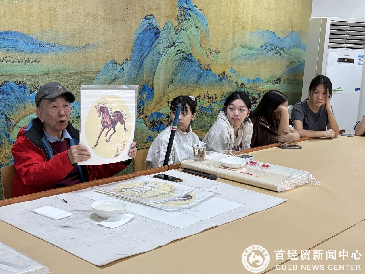 Mr. Bian Jingyi, a master of decorative painting, visited the classroom in person to guide students in drawing horses and practicing traditional techniques such as applying yellow glue and gold foil. The room was filled with laughter, with someone remarking, “The horse I drew ended up with five legs!” Chen Ying, a student from Guinea, noted, “Pasting gold foil seems simple, but doing it well is actually challenging.”