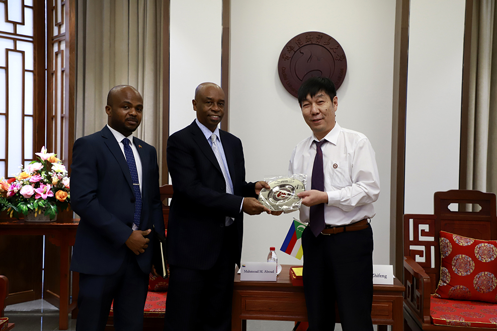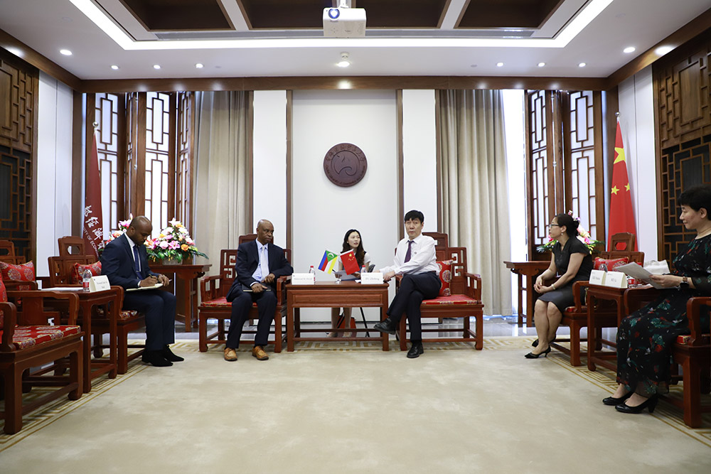 On the afternoon of July 3rd, President Fu Zhifeng met with delegation of Embassy of the Union of Comoros headed by ambassador H.E.Mr. Mahmoud M. Aboud. Both sides had a discussion on cooperation and communication.