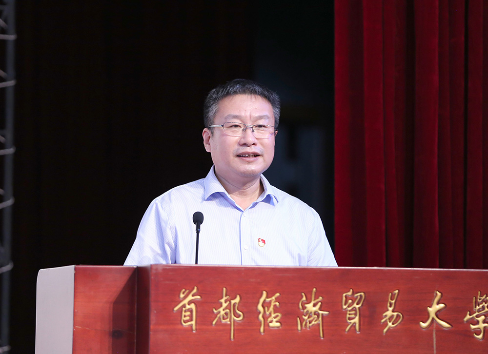 On the afternoon of June 2, a keynote report on learning CPC history was held in Zhuoyu Auditorium Hall, Boyuan Building. Zhou Bingde, niece of Premier Zhou Enlai, former Vice President of China News Service and President of Enlai Foundation, was invited to deliver a special report on “Maintaining Zhou Enlai Spirit and Revolutionary Culture”. Xu Fang, Deputy Secretary of the Party Committee of CUEB, Wang Chuansheng, member of the Party Standing Committee and Vice president of CUEB, Xing Qi, member of the Party Standing Committee and Director of the United Front Work Division, middle-level leading cadres of CUEB and representatives of teachers and students of the School of Foreign Studies attended the report. The report was presided over by Han Xianzhou, Party Secretary of CUEB.