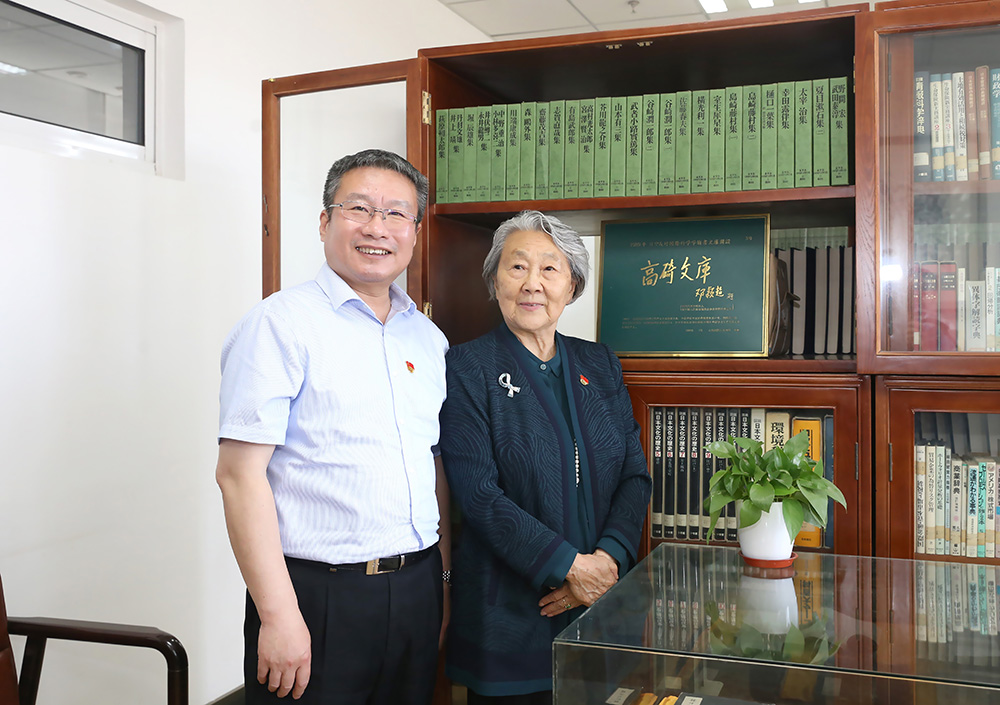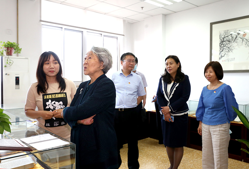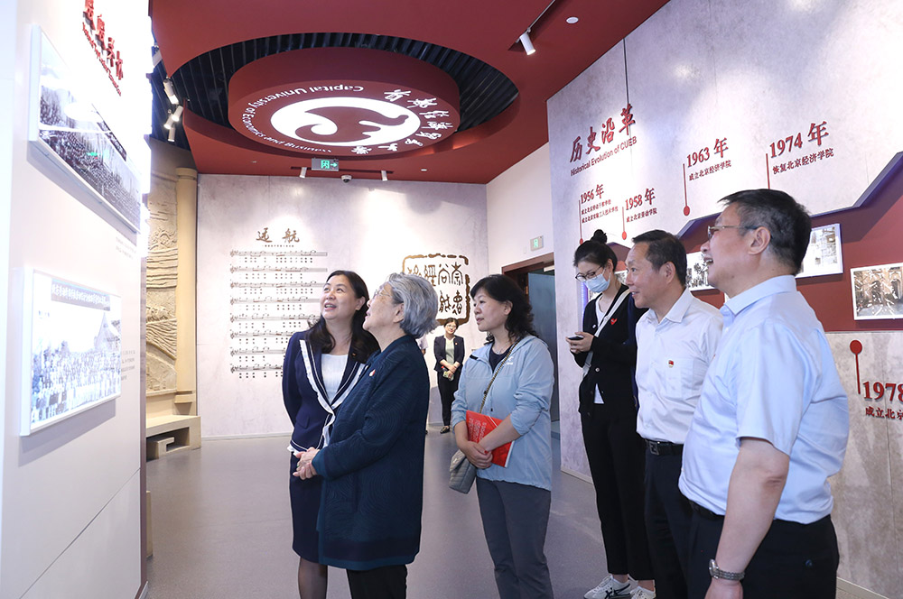 After the report, Han Xianzhou accompanied Zhou Bingde and her partners to visit CUEB History Museum, and visit the Gaoqi library inscribed by Deng Yingchao and the ecological and natural literature library in the library.