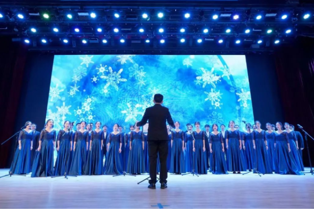 The ceremony comes to an end with the singing of “Snowflakes” by members of the College Student Art Group.