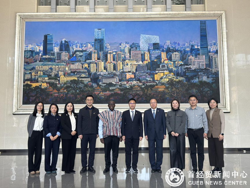 On the morning of December 9, Wu Weixing, Deputy Party Secretary and President of the Capital University of Economics and Business (CUEB), met with Samuel K. Bonsu, President of the Ghana Institute of Management and Public Administration (GIMPA), at Hechang Hall in Boyuan Building. Vice President Li Kunpeng, Member of the Standing Committee of CUEB Party Committee, attended the meeting. The two sides held in-depth discussions on advancing inter-university cooperation, promoting joint programs, and fostering scientific research and innovation.
