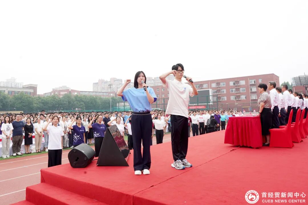 Zhang Jinhan, an undergraduate of the Class of 2022 from the College of Business Administration, spoke on behalf of all students. Drawing on her three years of university experience, she elaborated on three aspects—Moving Forward with the Nation, Dedicating Herself to Study, and Daring to Try—to share the rich campus life. She recounted the moving story of CUEBers enthusiastically serving and supporting the 80th Anniversary of the Victory of the Chinese People’s War of Resistance Against Japanese Aggression and the World Anti-Fascist War, and encouraged the freshmen to face choices with composure and surpass themselves with perseverance, striving to become light and shine light on this vibrant campus.