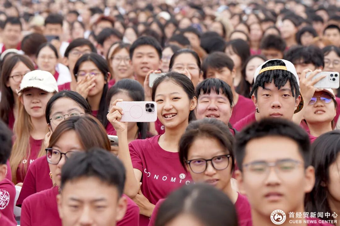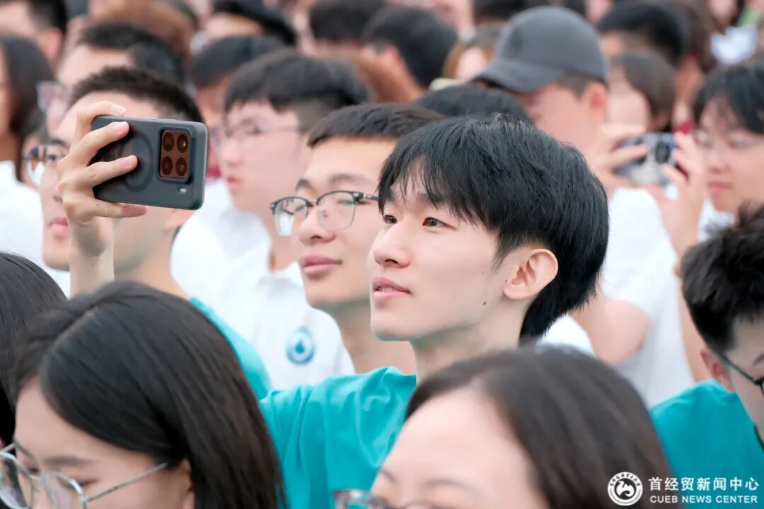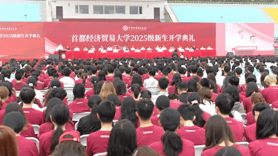 Also present at the ceremony were CUEB leaders, including Zhao Guang, Standing Committee Member of the Party Committee and Minister of the Organization Department and the United Front Work Department; Fu Lin, Standing Committee Member of the Party Committee and Minister of the Publicity Department; members of the Academic Degree Committee, heads of administrative and support departments, Party secretaries, deans, and deputy secretaries in charge of student affairs from various schools, all counselors and class advisers of freshmen, representatives of all faculty and students, and all 2025 freshmen. The ceremony was also broadcast live on CUEB’s official WeChat video account, garnering over 17,000 views, including many parents of the freshmen.