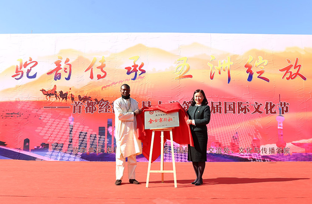 On October 31st, the 4th International Culture Festival was held at Camel Square of CUEB. Peng Wenbo and Vongsine SAYYAVONG, Counsellor and First Secretary of the Education and Culture Office of The Lao People’s Democratic Republic Embassy to China, Rebecca Ramadup (transliteration), Education Officer of Botswana Embassy, Abras Ruslan, Third Secretary of Egypt Embassy, Feng Pei, Party Secretary of CUEB, Xu Fang, Deputy Party Secretary of CUEB, Ding Lihong, Wang Chuansheng and Yang Kaizhong, Vice Presidents of CUEB, Tang Xing’an, Secretary of Commission for Discipline Inspection, and Xing Qi, member of CUEB Party Standing Committee and Director of United Front Work Division, attended the opening ceremony.